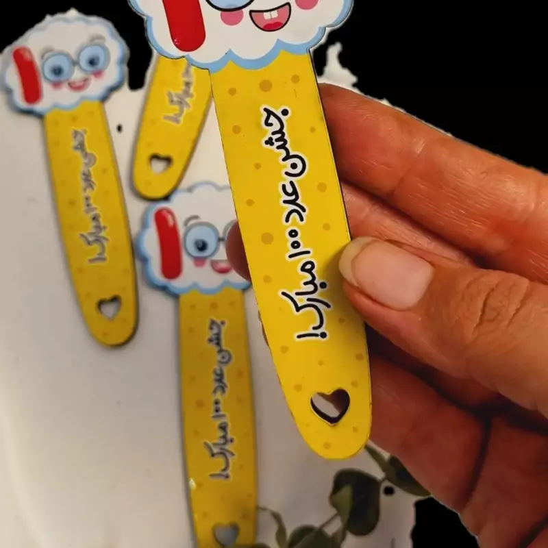 برای جشن صد بوک مارک چوبی جشن 100 این محصول که نشانک یا نشاندار یا بوک مارک اسم داره رو طراحی کردیم!