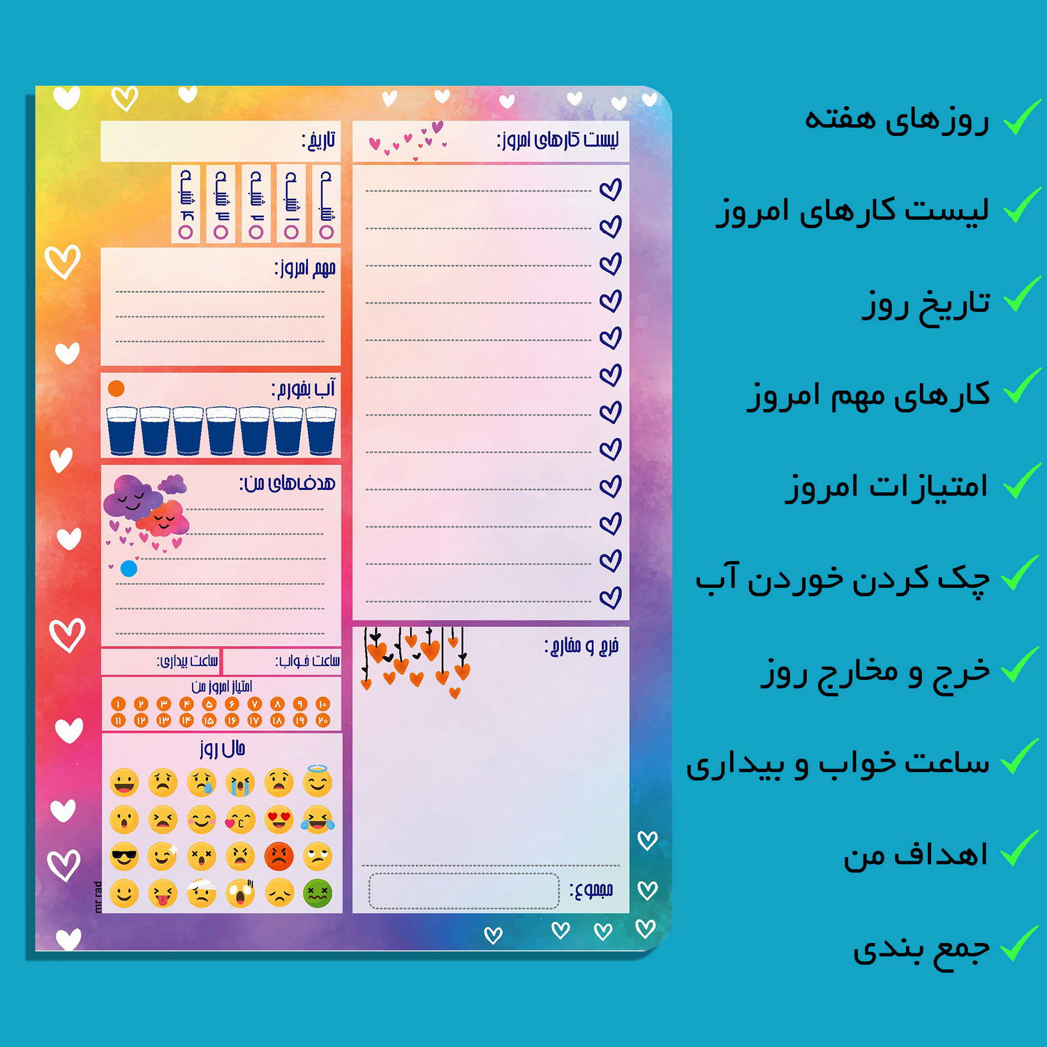 پلنر روزانه قلب مدل پالت